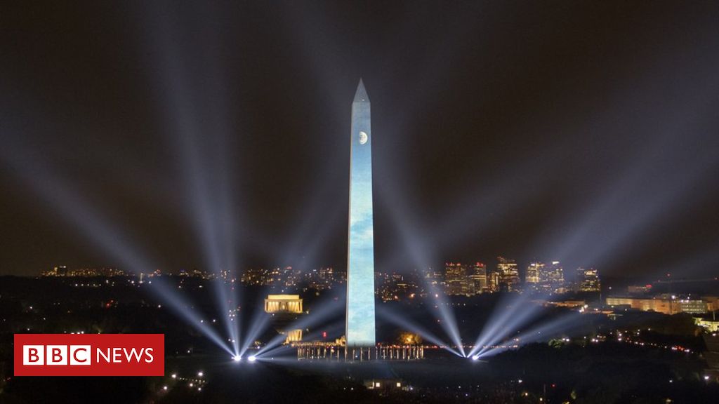 On Friday night, a 17-minute show featuring images from the moon landing were projected on to the Washington Monument in Washington DC, while crowds of people watched from the National Mall.