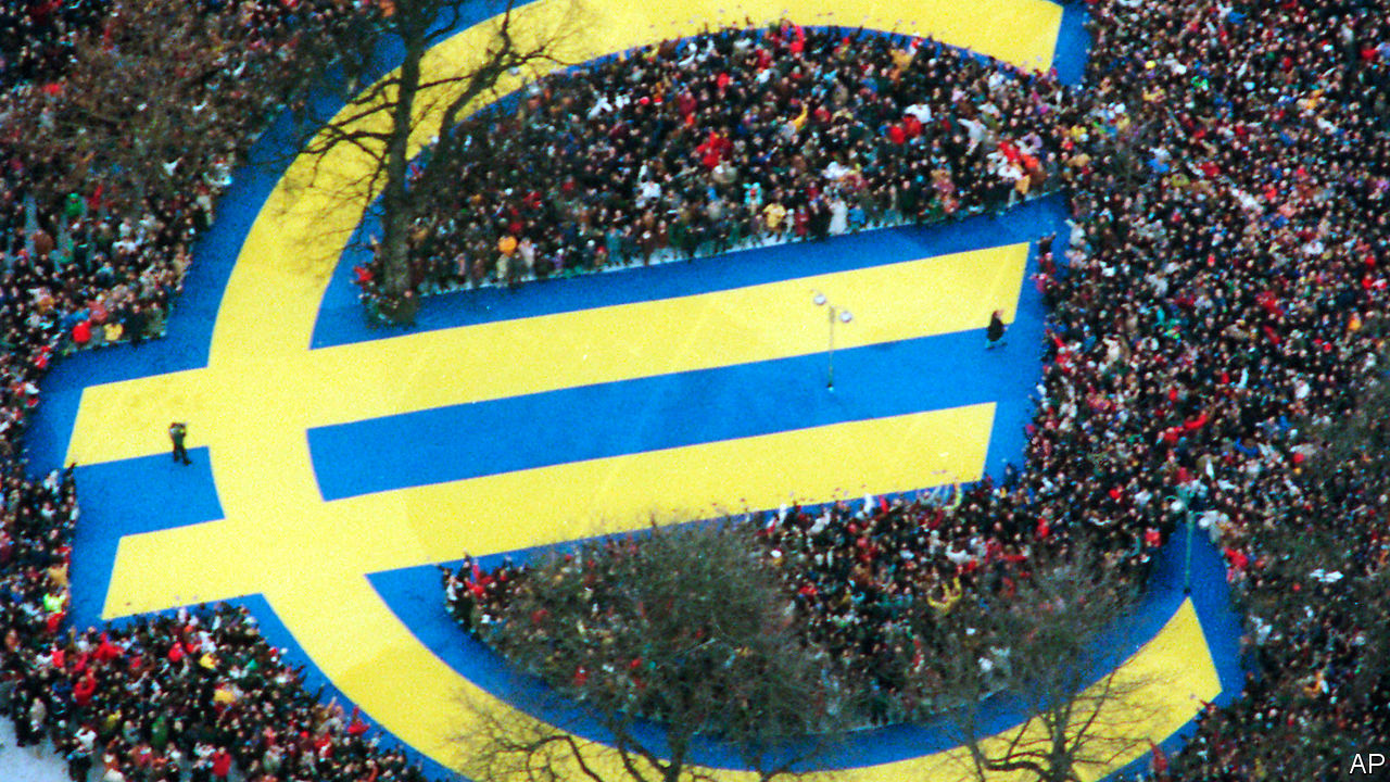 THE BIRTH of the euro on January 1st 1999 was at once unifying and divisive. It united Europe’s leaders, who hailed a new era of tighter integration, easier trade and faster growth, thinking they were building a currency to rival the dollar. But the euro divided economists, some of whom warned that binding Europe’s disparate economies to a single monetary policy was an act of historic folly. They preferred a comparison with emerging markets, whose dependence on distant central banks fosters frequent crises. Milton Friedman predicted that a downturn in the global economy could pull the new currency apart.