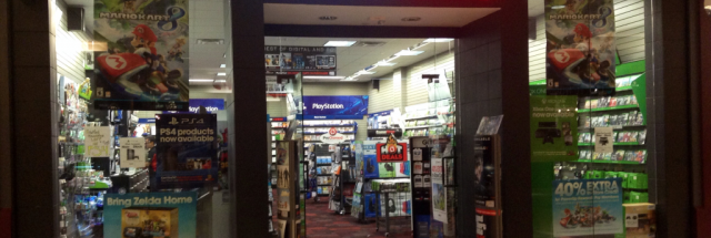 Brightly lit GameStop storefront.
