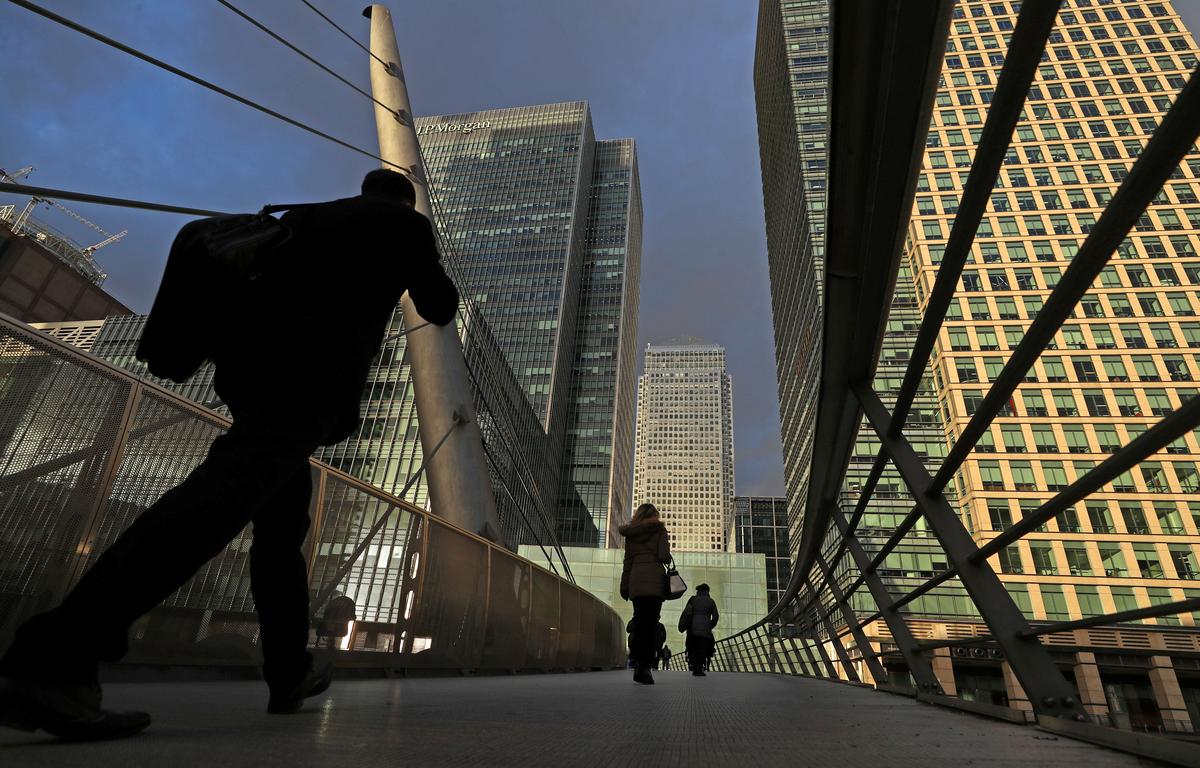 FILE PHOTO: People walk through the Canary Wharf financial district of London, Britain, December 7, 2018. REUTERS/Simon Dawson