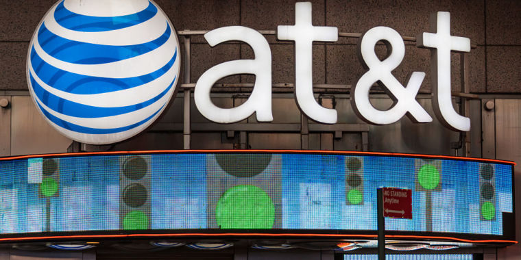 Enlarge / An AT&T sign outside a company office in New York City.