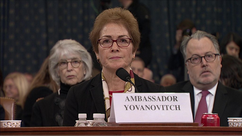 Just over an hour into Marie Yovanovitch’s testimony, Mr Trump launched the kind of Twitter fusillade that has become a regular part of his political repertoire. He questioned the ambassador’s competence, noted that the Ukrainian president spoke unfavourably about her and pointed out that he has the right to fire diplomats at will.