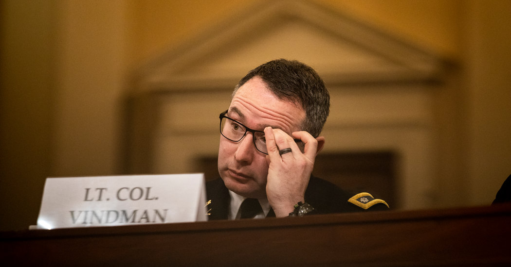 “Ranking member, it’s Lieutenant Colonel Vindman, please,” he instructed the committee’s top Republican, Representative Devin Nunes of California, at one point after Mr. Nunes addressed him as “Mr. Vindman.”