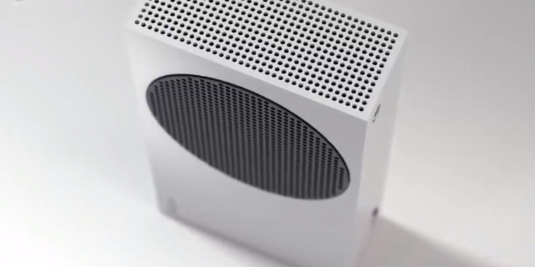 What the narrator doesn’t say in that brief clip is that the Series S appears to be missing a disc drive on its front face or the other visible sides. Whether a disc drive might exist on any other sides remains unclear, but that’d be a huge design departure for Xbox, which has placed disc-drive slots on the same side as its console power buttons for years. Hence, skipping the disc drive as a way to get the price down to $299—and further emphasizing digital-download subscription packages like Xbox Game Pass—seems likely.
