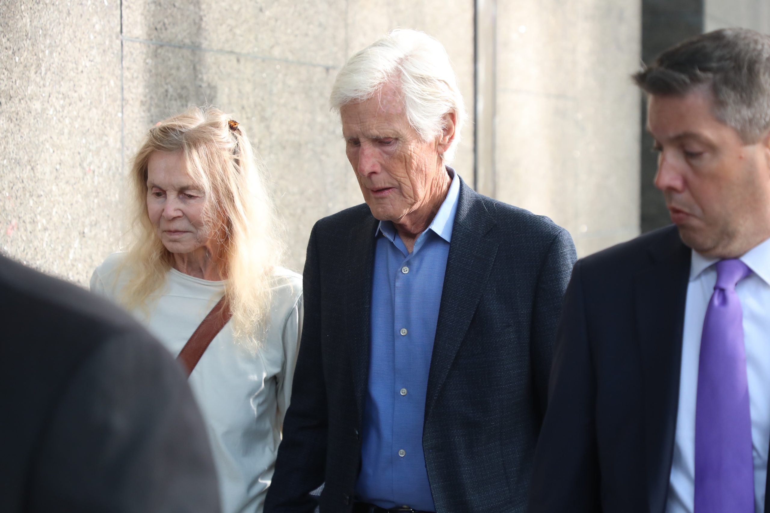 Mom Suzanne Perry and stepdad Keith Morrison were spotted outside the federal courthouse in downtown LA looking somber ahead of the proceedings.
